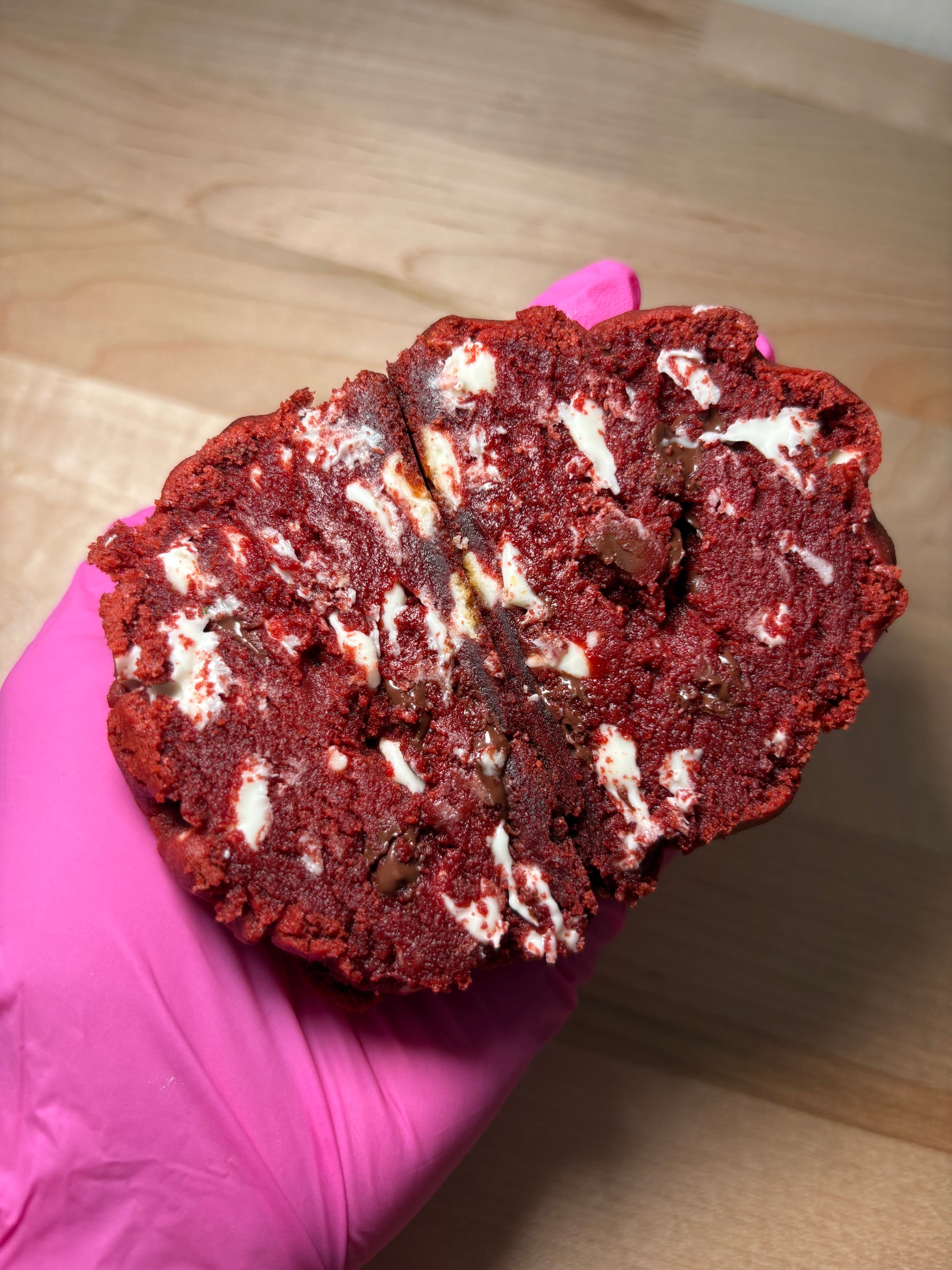 Está generosamente rellena con trozos de chocolate blanco cremoso y chocolate semi amargo, creando un equilibrio delicioso entre lo dulce y lo intenso. Hecha artesanalmente con ingredientes frescos y de calidad, esta galleta es perfecta para quienes aman los sabores clásicos con un toque elegante